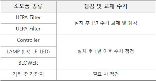 ■ 항목별 교체 및 점검 주기