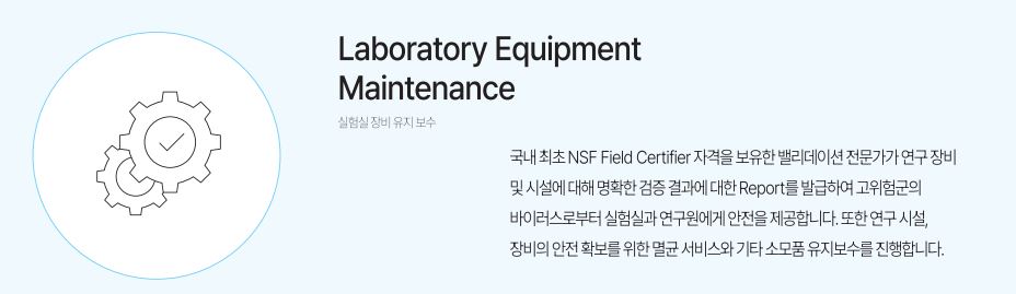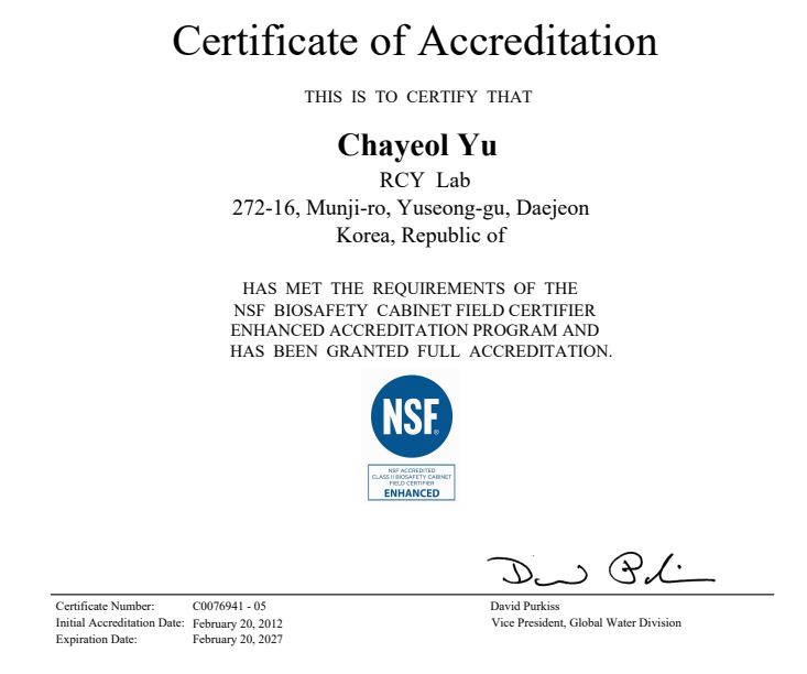 알씨와이랩은 국내최초 NSF Field Certifier 로써 전문 과학 장비 유지보수, BL3 실험실 컨설팅, 실험장비 설계및